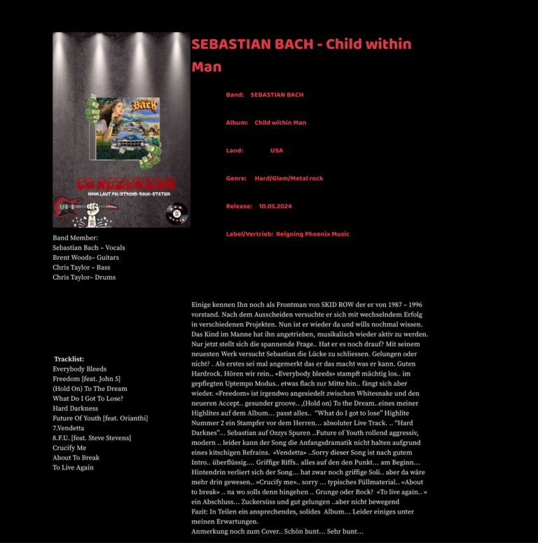 Willkommen im Archiv von Strohs Rock Station! Um einen Bericht zu lesen, klickt einfach auf das Foto, und der Bericht wird in größerer Ansicht angezeigt. Viel Spaß beim Stöbern! Wie gewohnt sind die Bands alphabetisch geordnet.
